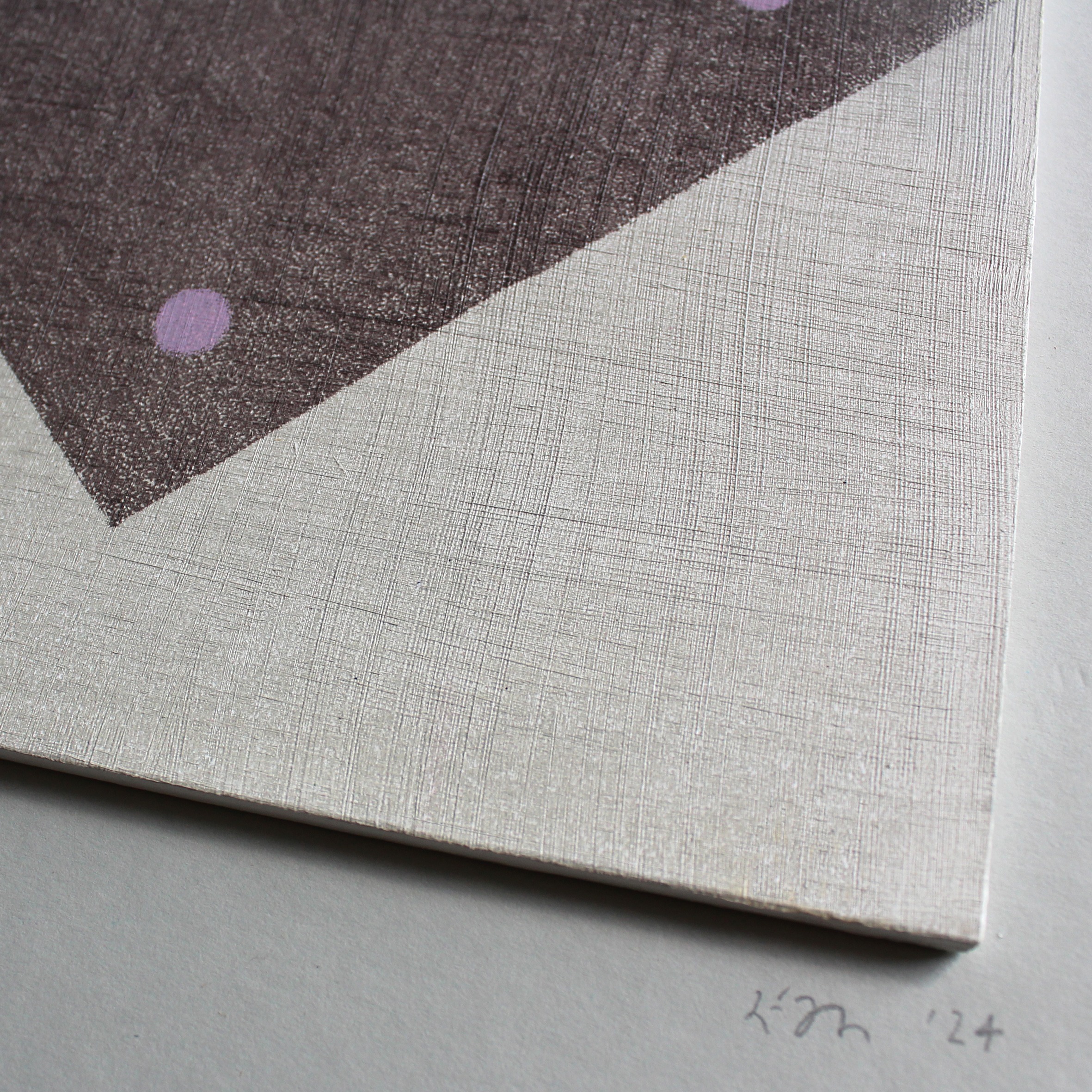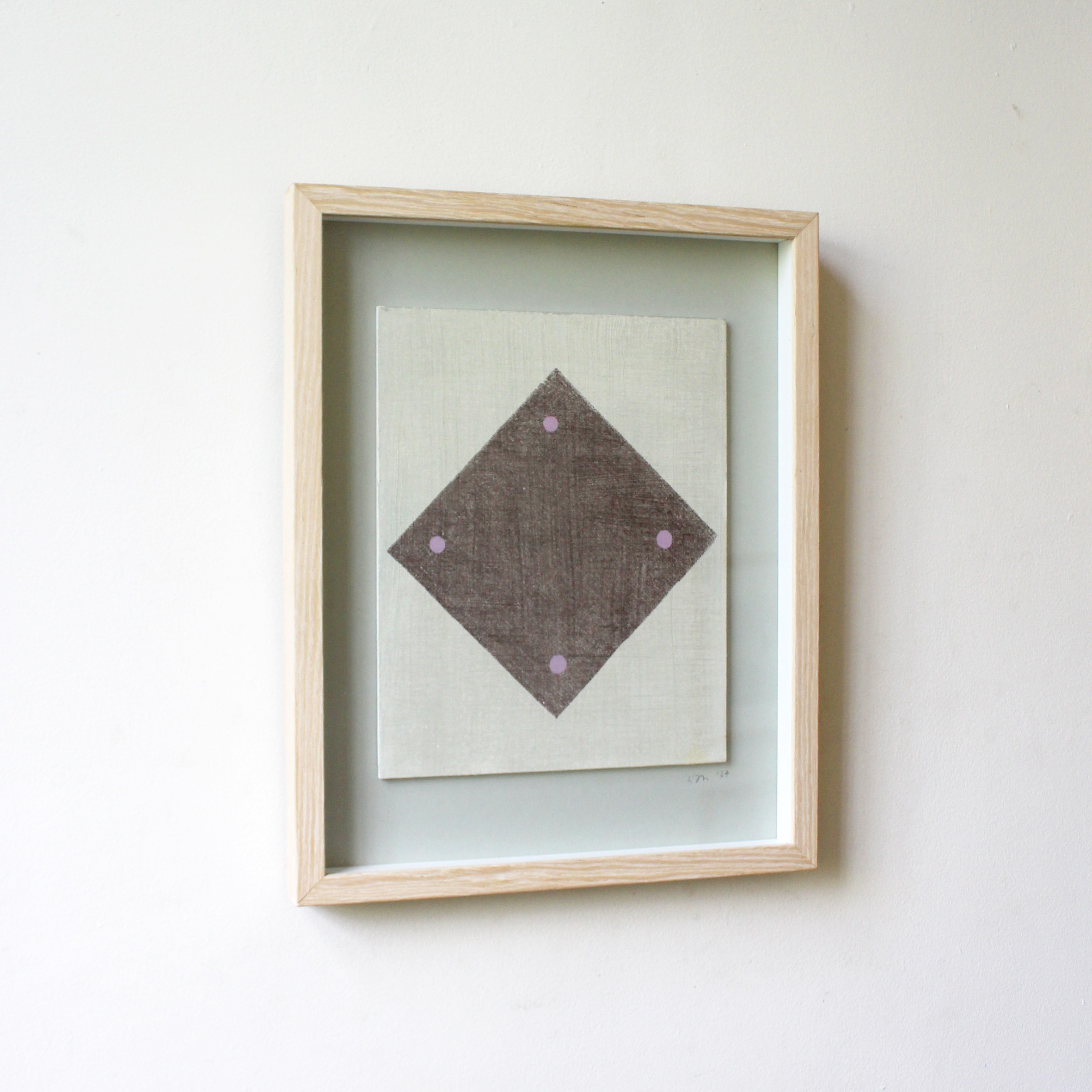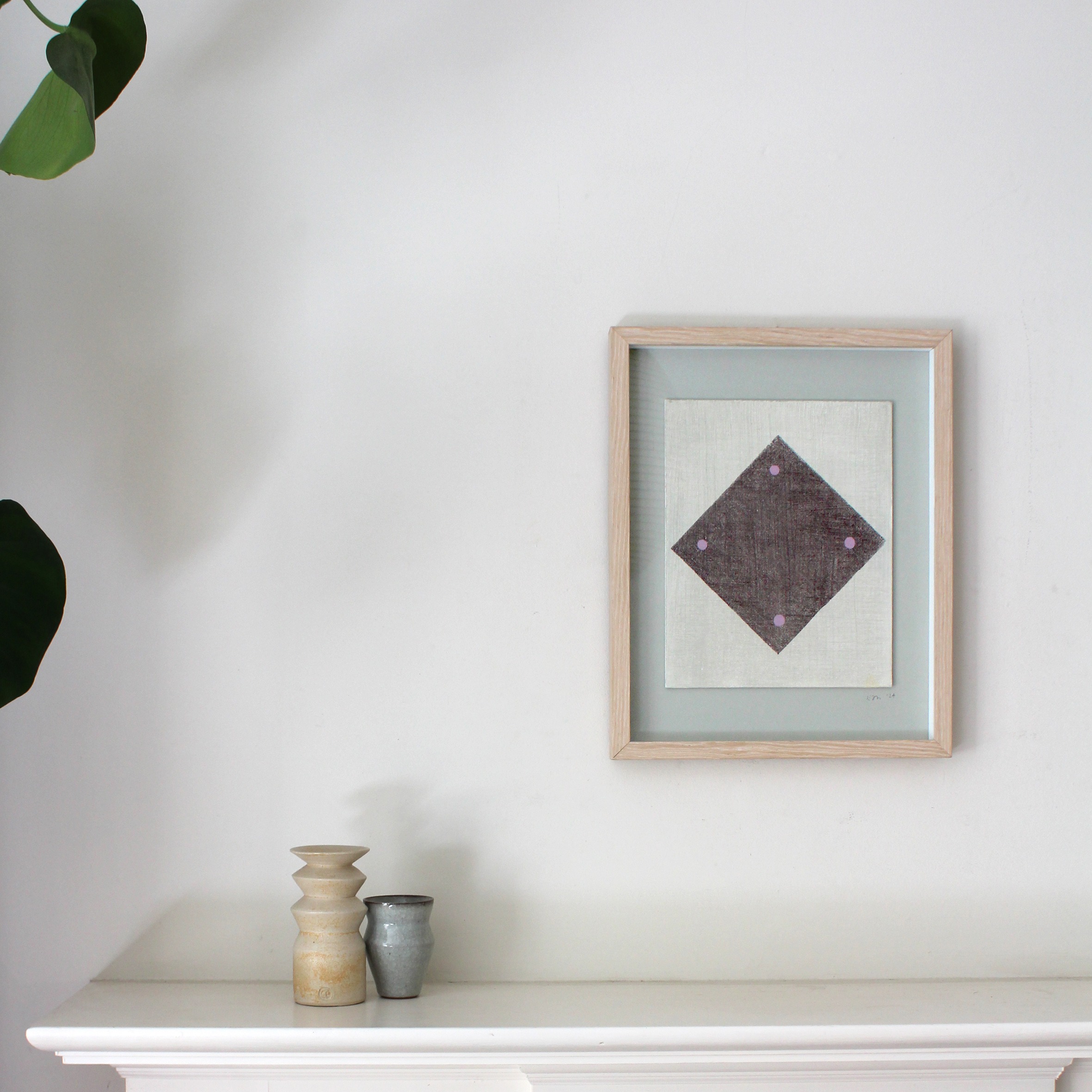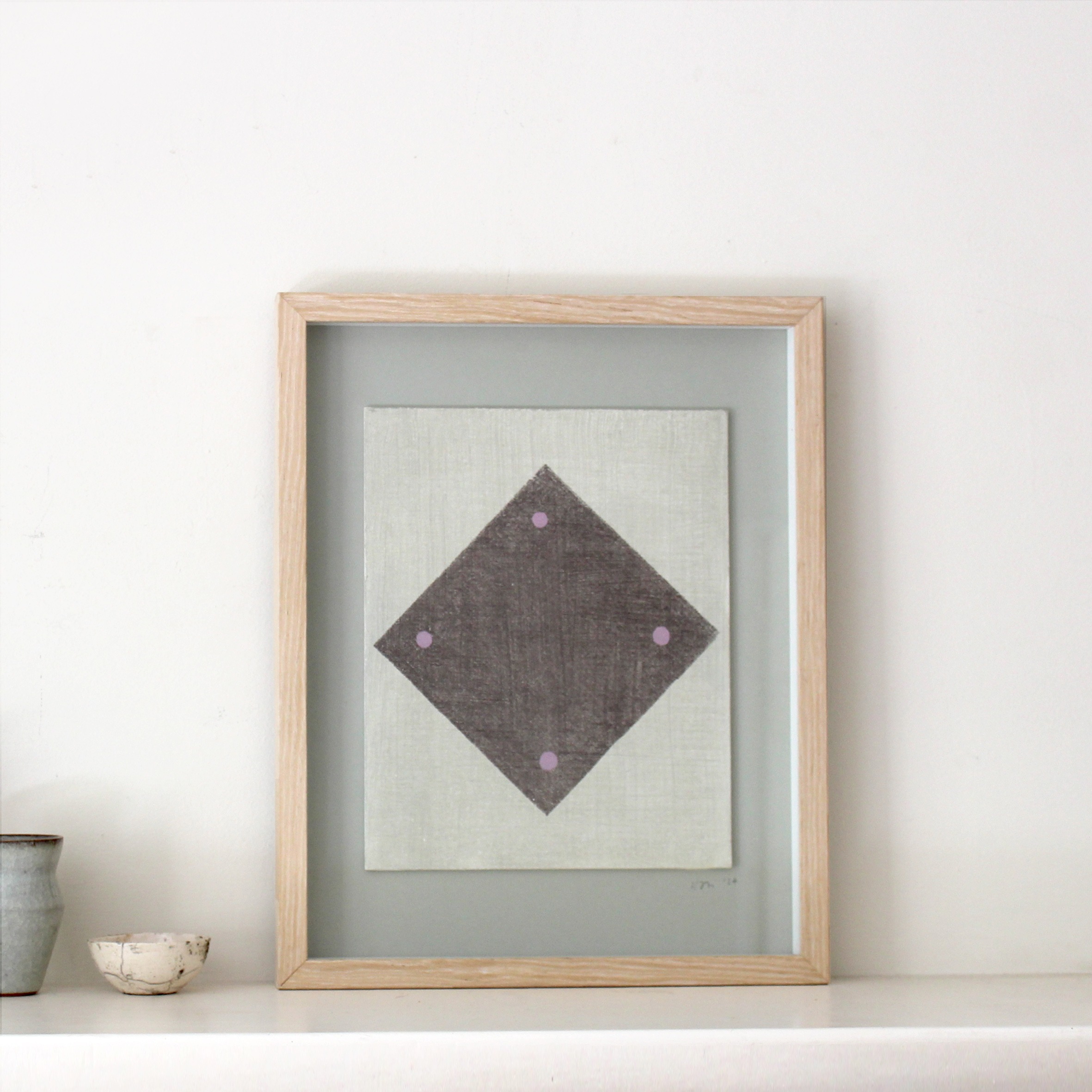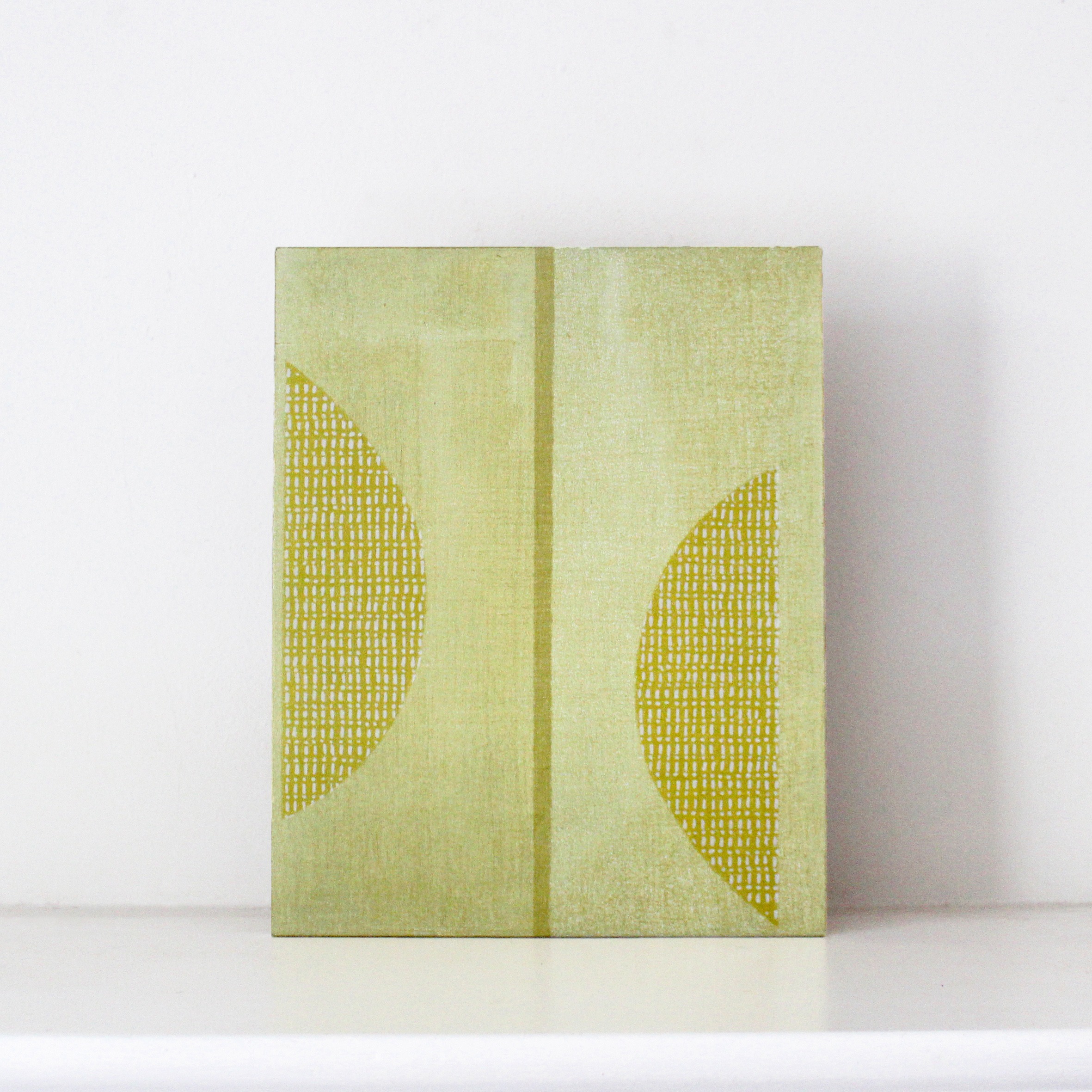 These works are made spontaneously alongside making prints on paper. They are unplanned and evolve almost by themselves. Even though most of my work comes from things seen in the landscape, these recent pieces seem to flow from other work. I love to try out different textures through hand-drawn stencils to add subtle details and add extra layers of colour.
